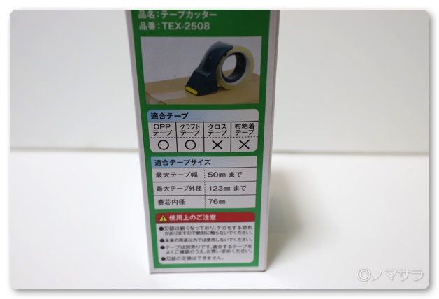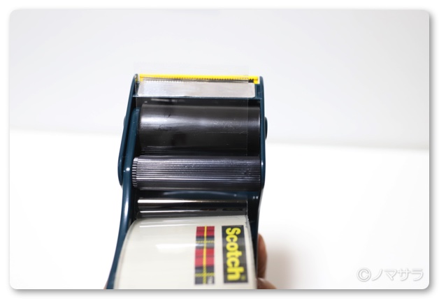 サイズは3インチ(76mm)の紙管用なので、ほとんどのガムテープやOPPテープなどで使用できます。ただし、クロステープや布粘着性テープは使えません。