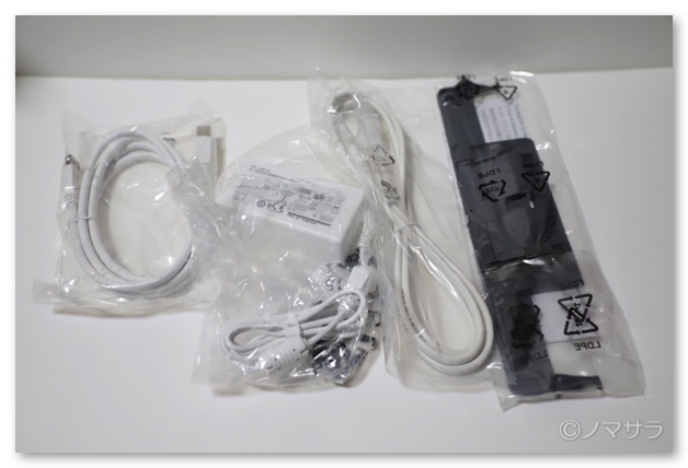 付属品は電源アダプターとUSBケーブル、名刺・レシートガイドのみ。