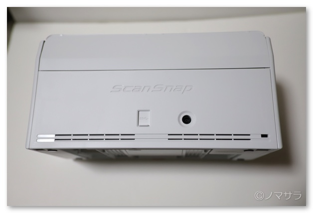 本体裏にはUSBポートと電源コネクタのみ。このiX1500はWi-Fiで接続して使うのを前提としておりUSBは通常使わないためカバーがついています。