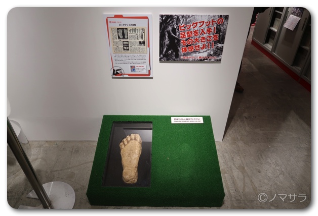 ビックフットの足型を入手したとのことで実物大の足型が飾ってありました。どのぐらいの人が信じているのでしょうか(笑)