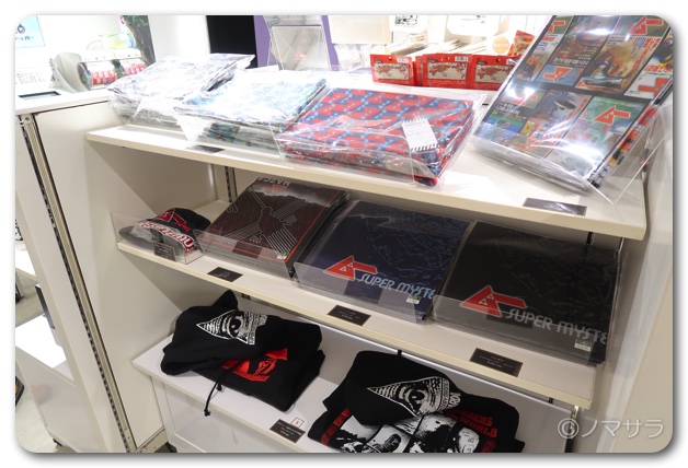 出口を出たところにはグッズショップがあり、限定の40周年記念タオルをはじめ、トートバッグ、Tシャツ、アクセサリーなどムー関連の様々なグッズが所狭しと並んでいました。心惹かれるものがなかったので何も買いませんでしたが…。