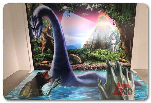 一番最後のコーナーではトリックアートが設置してあり、デジカメで撮ると立体的に見えます。