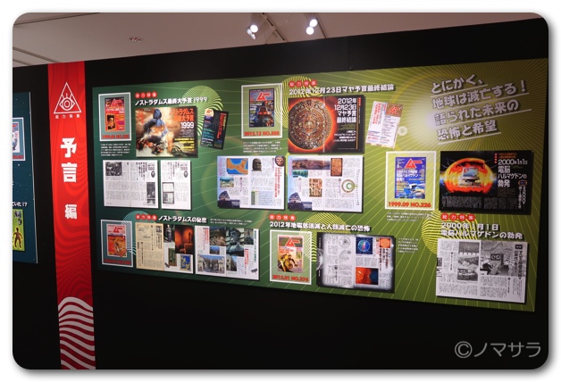 特集コーナーでは古代文明、超能力、心霊現象、終末予言、UFO、UMA(未確認動物)などが展示してあります。ありがたいことにノストラダムスをはじめとする終末予言はどれ一つとして当たっていません(笑)