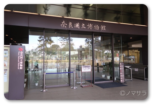 奈良国立博物館は近鉄奈良駅からは歩いて10分ほどの場所にあります。途中、奈良公園を通るので鹿があちこちウロウロしてるのを横目に見ながらなので、あっという間に到着。最近は中国人観光客が鹿の習性を知らず無茶するため事故が多発してるとのこと。鹿は時期によっては気性が荒いこともあるので注意が必要。