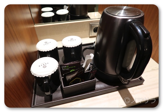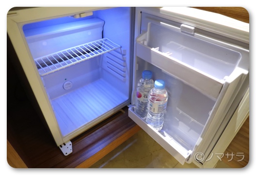 冷蔵庫には無料のミネラルウォーターが入ってました。ポットがあるので、紅茶なども飲むことができます。