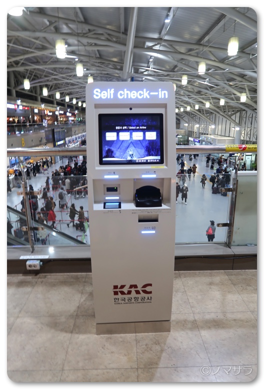 インフォメーションカウンターで聞いたらセルフチェックインの機械があるので、それで発券すればいいとのこと。日本語メニューもあり、簡単にチケットを発券できて、それを持って再度チェックインカウンターへ。ほぼ並ばずチェックインすることができました。