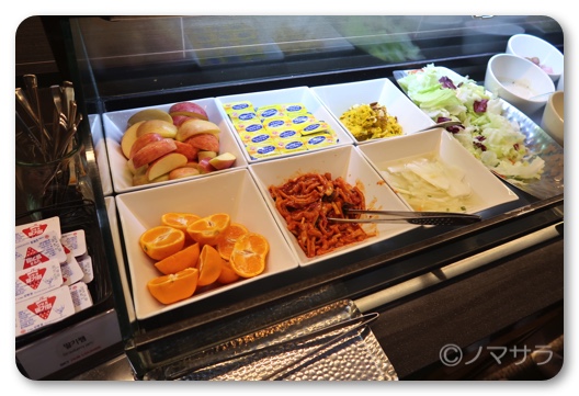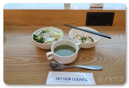 釜山金海国際空港のスカイハブラウンジは食事も提供されており、バイキング形式でお粥やパン、シリアルの主食をはじめ、サラダバーや和食、洋食色々揃っています。ホテルのバイキングとなんら遜色ありません。