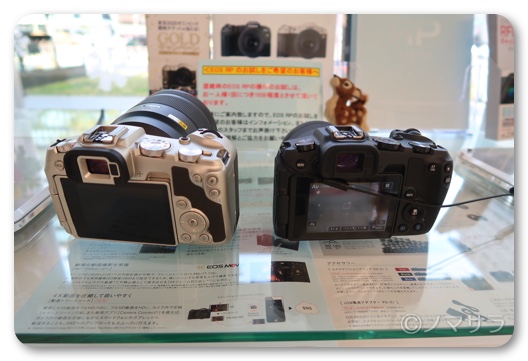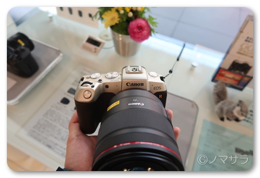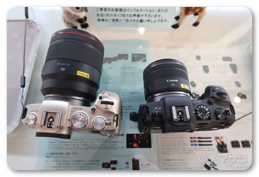 キヤノンギャラリーにはEOS RとEOS RPのブラックモデルとゴールドモデルが置いてありました。