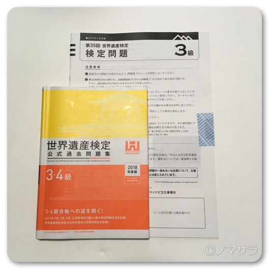 先日、世界遺産検定3級を受験してきました。結果は合格。満点ではありませんでしたが、HPの回答と試験問題の回答を照らし合わせたら90点以上ありました。認定点は60点なので余裕の合格。