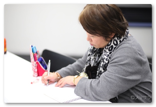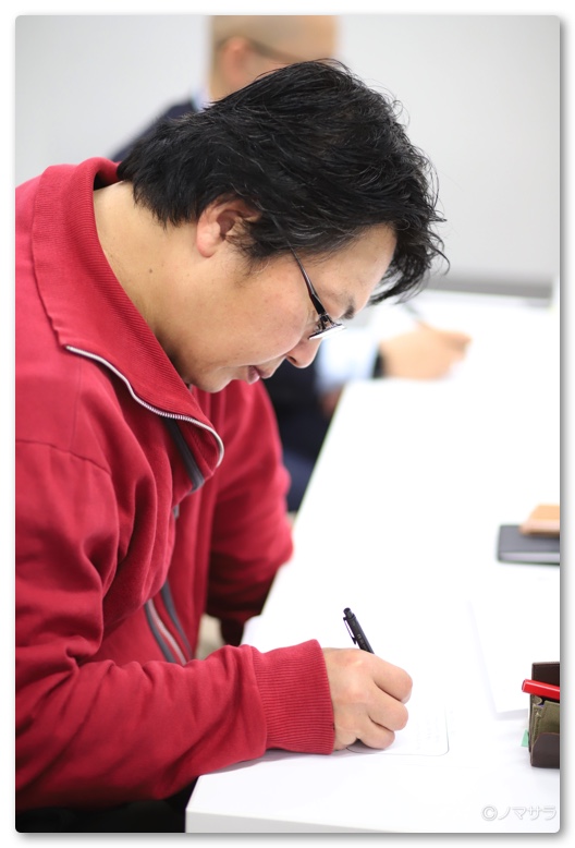 最終的には17名の方々にお申し込みいただき、多すぎず少なすぎずちょうどいい感じの人数になりました。ただし、当日体調不良で欠席の連絡をいただいた方が1名と無断欠席の方が1名おられましたので実際には15名での開催となりました。ワタクシとリアルかつFacebookで繋がっている方は全員時間を守って来られましたが、全く面識のない方が連絡もなく欠席される結果となりました。こういったイベントを開催した場合、たいてい1~2名は遅刻やキャンセルがあるので想定の範囲内ですが、こういったことをすると確実に信用を失いますので、気をつけたいもの。残念ながら10時には全員が揃わなかったのですが予定通りスタートしました。前半はメモの取り方のなどを教わりました。