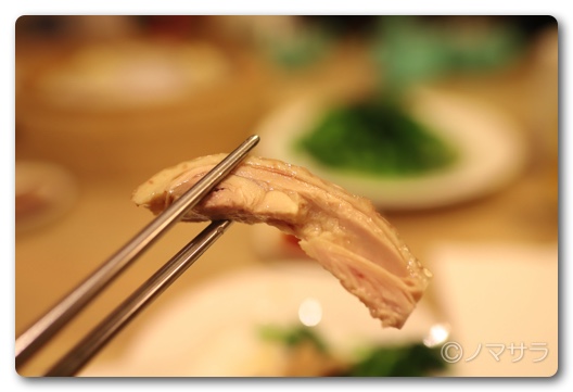 続いて出てきたのが鶏肉の紹興酒漬け。プリップリで身の締まった鶏肉が絶妙の味付けで超美味。ビールのあてに最高。ただし、少々紹興酒の香りがするため娘たちには不評で少し口をつけただけで食べずじまい。台湾ビールと良く合います!