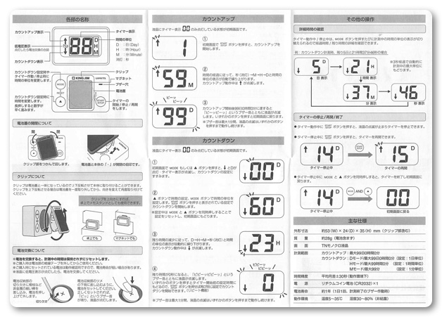 その後は世界遺産検定2級が7月にあり、9月には旅行業務取扱管理者があるので、それぞれカウントダウンして計画を立てて、しっかり勉強していきます。このクリップタイマーは試験日や発表会などの日付が決まっていてカウントダウンしたい方、また三日坊主にならないよう、日にちを見て続けるモチベーションを保つためにカウントアップしたい方などにはオススメ。もう少し価格が安ければ言うことなしですが、その点が残念。そのうち、ダイソーとかセリアで似たような製品が出てきそうなので、それを待ってもいいかもしれません。100円なら、いくつも買って色々なものに付けたり、スケジュールのカウントダウンしたり、さらに用途は広がりそう。