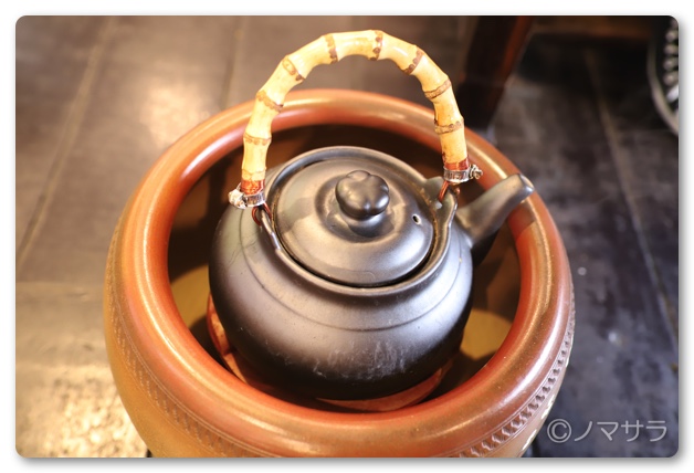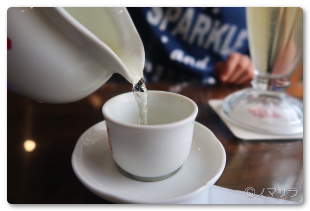 お茶を頼むと一緒に茶菓子が出てきます。きな粉黒糖わらび餅、胡麻せんべい、落雁風饅頭、梅の干したものの4種類。わらび餅は美味しく食べやすい一方、梅の干したものは独特な味わいでワタクシ以外は誰も食べず。周りを見てもみなさん残していたので日本人の味覚には合わないのだと思います。