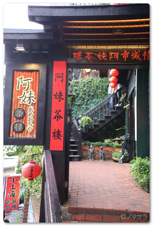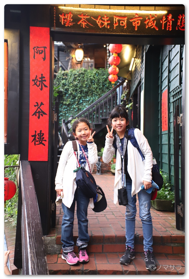 今回は九份で一番有名で湯婆婆の油屋のモデルになったと言われている「阿妹茶楼(アーメイチャーロウ)」というお茶屋で休憩することにしました。15時前に訪れたところ、タイミングよく窓際の席が空いていて待つことなく入れました。子どもたちの体力と精神力が限界だったので助かりました。
