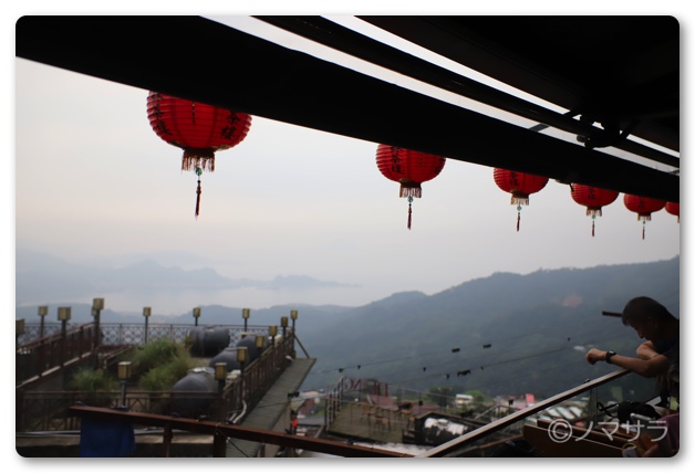 料金は一人300元(約千円)となかなかのお値段ですが、場所代と思えば適正な価格でしょう。お茶も一回の茶葉で3回飲めて、それが3〜4回分あるので、お腹がタポタポになるまで楽しめます(笑)窓からは九份の森と海が見える最高のロケーション。また向かい側から撮影するとポストカードでよく見る風景になります。今回はちょうど窓際中央の席に座れたので娘たちに顔を出してもらい撮影できて大満足。