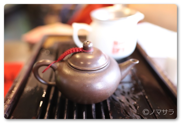 ここでは本格的な台湾茶を楽しむことができます。急須に茶葉を入れ、お湯を注いだらすぐに捨てます。2回目は注いで20秒待って器に注ぎます。この一番茶は香りが素晴らしいとともに味もめちゃウマ。3回目は30秒、4回目は40秒待って器に注ぐようにとのこと。後になるほど苦味が強くなり、予想していたのと逆の結果になりました。一番茶が一番飲みやすく美味しいということがわかりました。