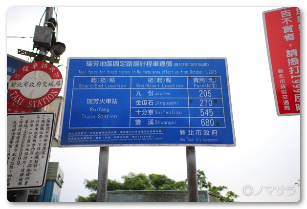 九份の鉄道最寄駅である端芳(ルイファン)までは36元(約130円)、端芳から九份老街までバスは一人15元(約50円)、タクシーは205元(約700円)ぐらい。タクシー料金はメーター制ではなく固定料金となっています。山道ではありますが、乗っている時間は15分ほどなのでバスでも全然大丈夫。