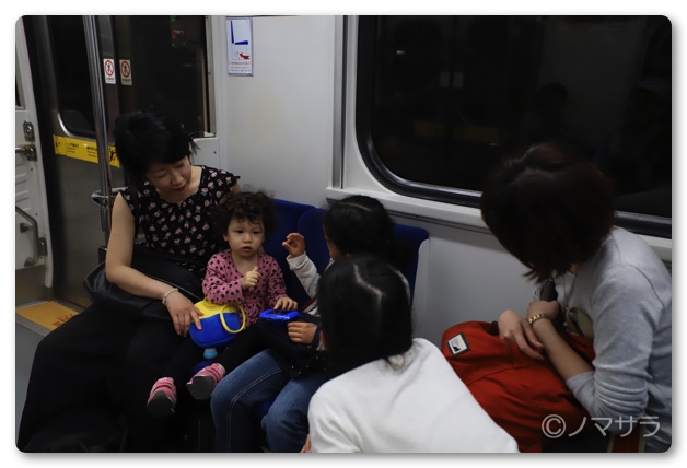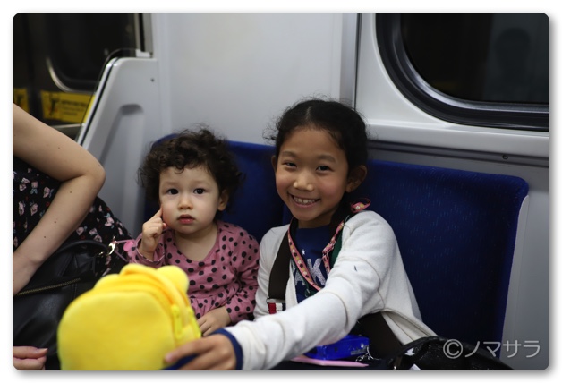 帰りの電車は旦那さんが外国人で奥様が日本人の家族と席が隣になり、一緒にワチャワチャ遊んでたので、さらに時間があっという間に過ぎました。ハーフの女の子は髪の毛がクルクル、目は大きくクリクリで超可愛かった。どうやってもハーフには勝てません(笑)