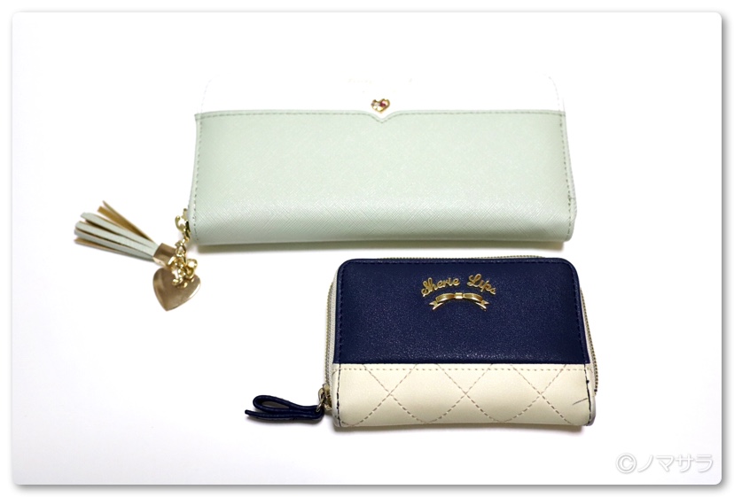 以前使っていた小さな財布との比較。やはりお札を折ることなく入れられる長財布がいいと思います。
