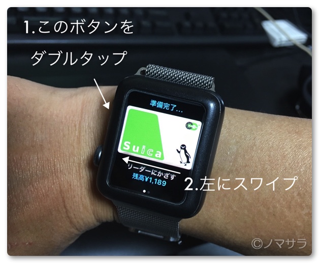その方法とはAppleWatchを使うこと。AppleWatchにはスマホ決済機能が搭載されているため、ここにiDを登録すればセブンイレブンで使うことができます。ただし、決済の際に少々テクニックが必要になります。それは側面のボタンをダブルタップして登録しているカードを切り替えること。