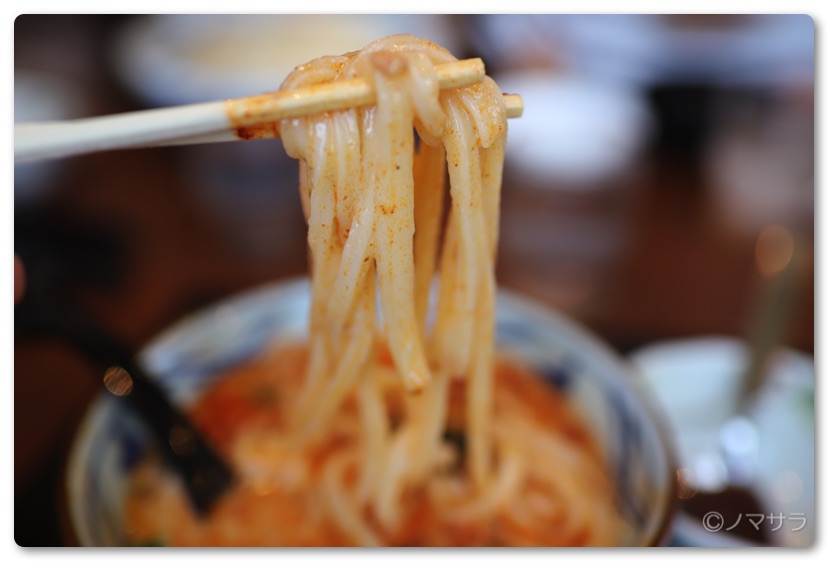 温かいのと冷たいのがありましたが、この日は25度近くあり冷たい方を選択。メニューにうま辛ペーストがオススメとあったので3辛を選びました。この時店長さんが外国人スタッフに「1杯弱入れてね」と言ってたのにたっぷりと2杯入れてました。1杯弱の意味がわからなかったのか、それともサービスしてくれたのか(笑)とりあえず、明らかに辛そうだったので食べる前にうま辛ペーストを半分くらいお椀に避けてから実食。