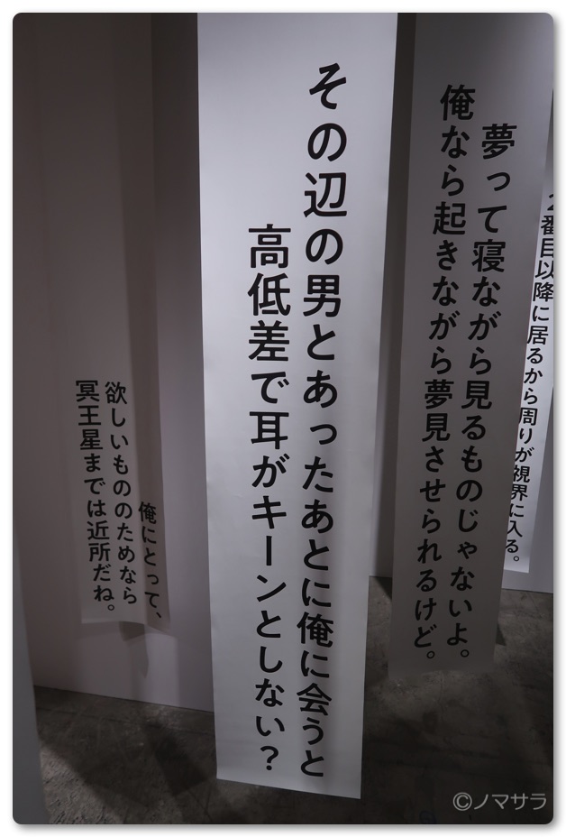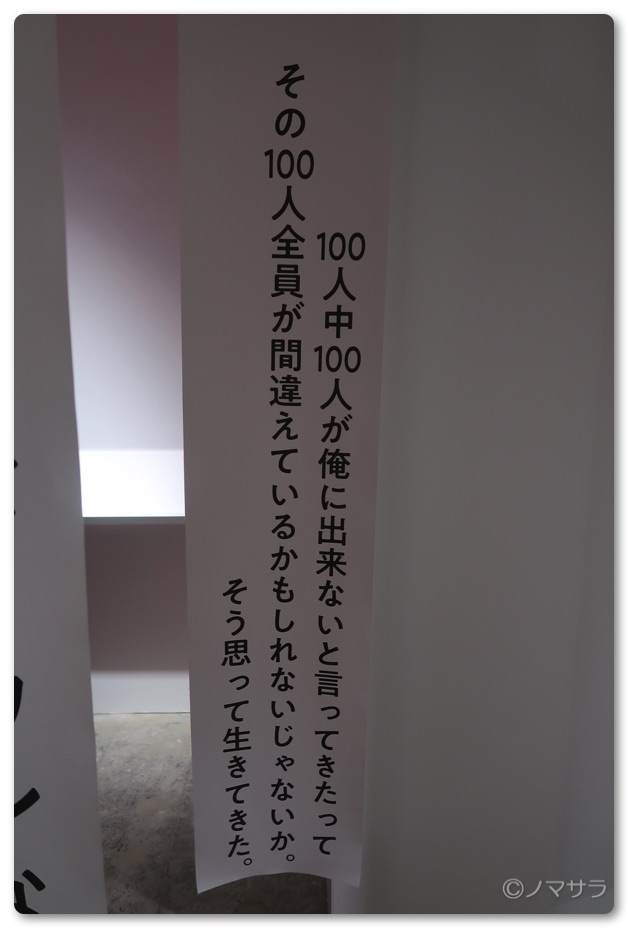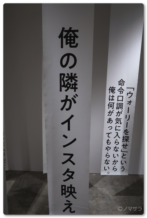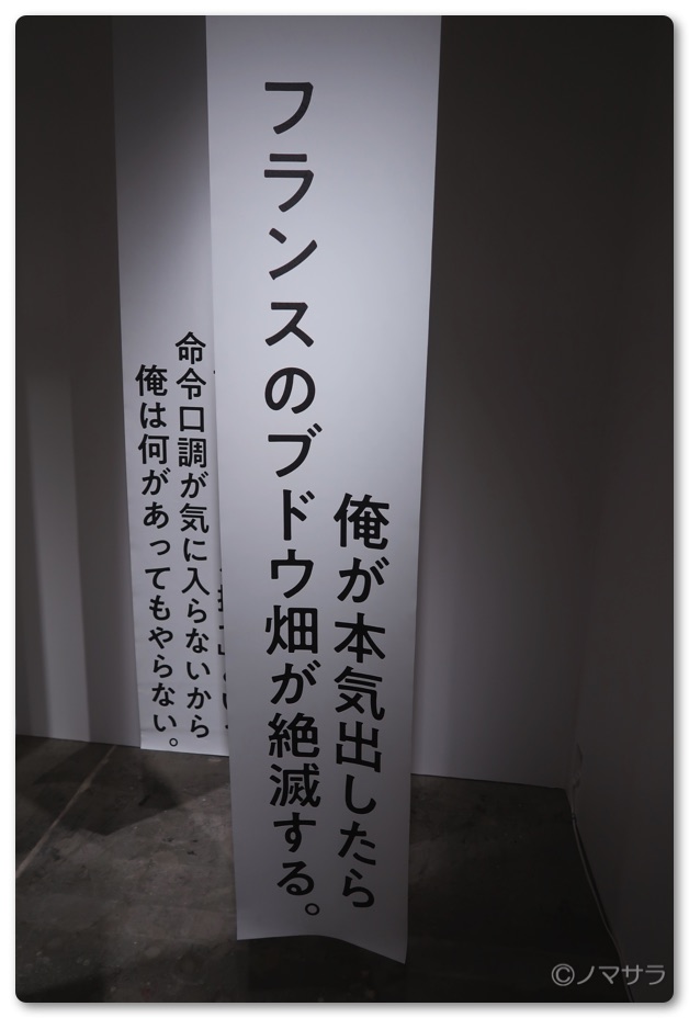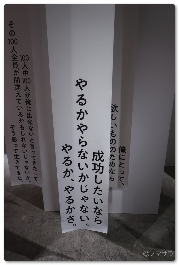 名言の垂れ幕で溢れる部屋では「俺の隣がインスタ映え」「『ウォーリーを探せ』という命令口調が気に入らないから俺は何があってもやらない」「俺が本気出したらフランスのブドウ畑が全滅する」「逆に二兎から追われる」といったウィットに飛んだ名言から「大切なのはどれだけ生きたかではなくどう生きたか。年齢なんて言い訳にしない」「1日サボれば1週間サボる、1週間サボれば1ヶ月サボる、1ヶ月サボるやつは1年サボるよ」「成功したいなら、やるかやらないじゃない。やるか、やるかさ」といった自己啓発本にあるような文言も。