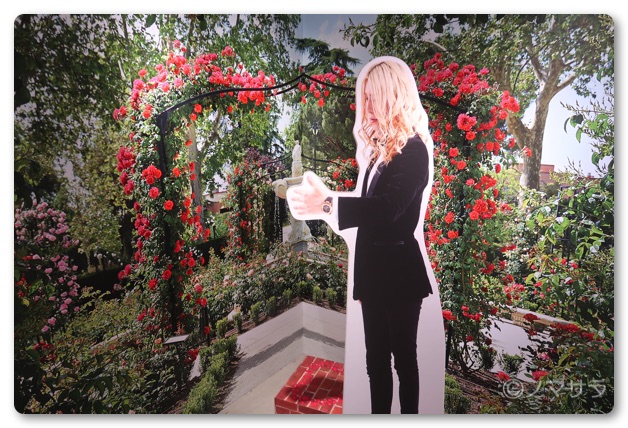 ROLANDの写真パネルとバラでで埋め尽くされた部屋