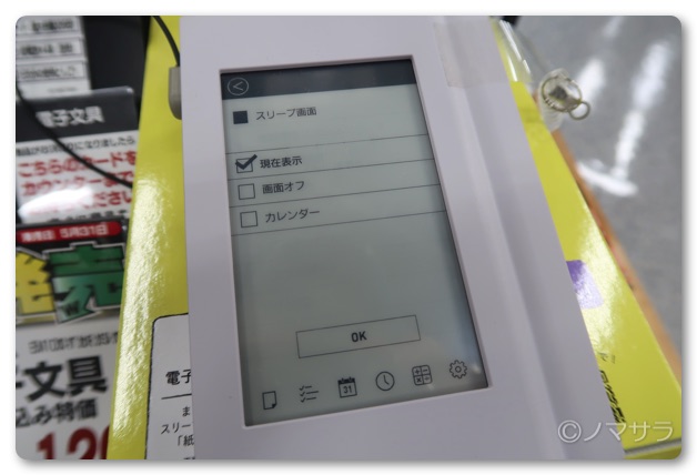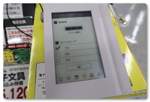 設定画面では日付/時刻、電源管理/オートスリープ、スリープ画面、週の開始日などが設定できます。microSDへのデータのエクスポート、インポートも可能ですが、あまり必要ないような気がします。