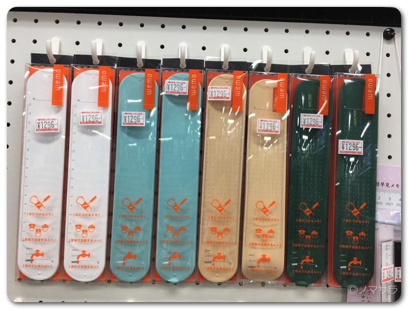 「いつでもどこでも書ける・思い出せる」をコンセプトにした腕に巻いて使えるウェアラブルメモ「wemo」。素材にシリコンを採用し、独自のコーティングを施すことで油性ボールペンで書いても消しゴムや指で消すことができ何度でも使用可能。手のひらや甲にメモを書く方を時々みかけますが、これを使えば自分の身体に書くことなくメモを取ることができます。