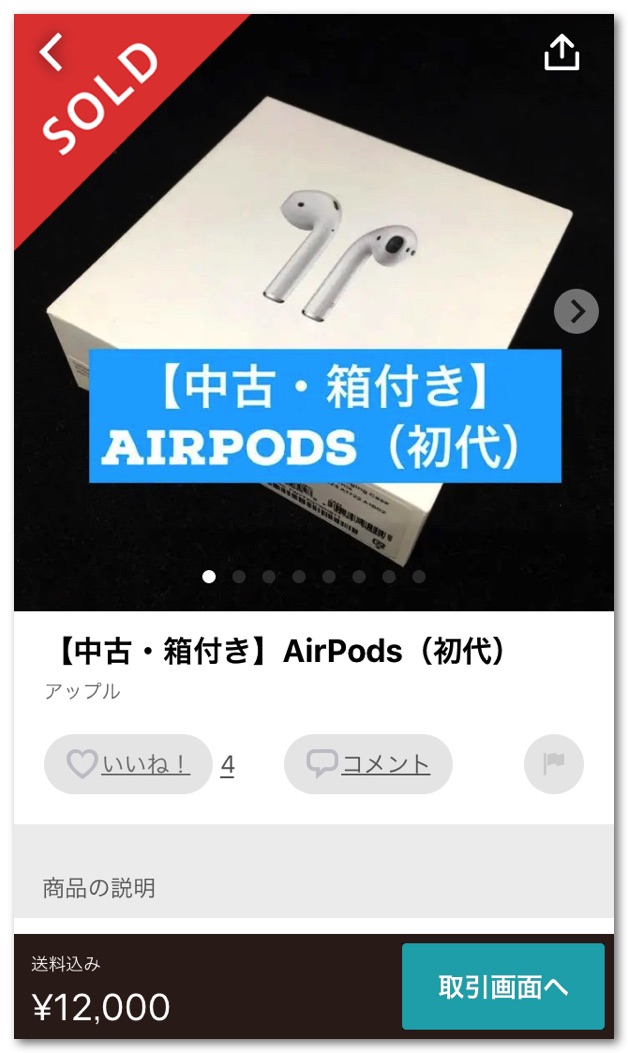 いままで使っていた初代AirPodsは約1年半以上ほぼ毎日使っており、バッテリーがかなり弱ってきたのでベストなタイミングで買い替えができました。なお、このAirPodsはメルカリで12,000円で出品したところ10分も経たずに売れました。ちゃんとバッテリーが弱ってることとキズがあることも明記したのですが、それでもあっという間に売れました。もう少し高くてもよかったかな…。おそるべしメルカリ。手数料と送料が引かれるので手元には約1万円が入りました。新型AirPodsとの差額は約6,000円なので、1年半使ってこの金額ならコスパは良好というか最高。なお、メルカリで高く売るコツは箱を取っておくこと、付属品のライトニングケーブルは使わないこと、写真を見やすくわかりやすくたくさん撮ること、アイキャッチ画像を作成することでしょうか。