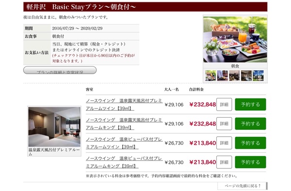 なお、今回宿泊する軽井沢マリオットに同じ日程でサイトから家族四人2泊で宿泊予約すると料金は20万円を超えます。朝食付きとはいえ、かなりのお値段。それがアメックスSPGの特典を使えば、朝食は付きませんが無料で宿泊できます。