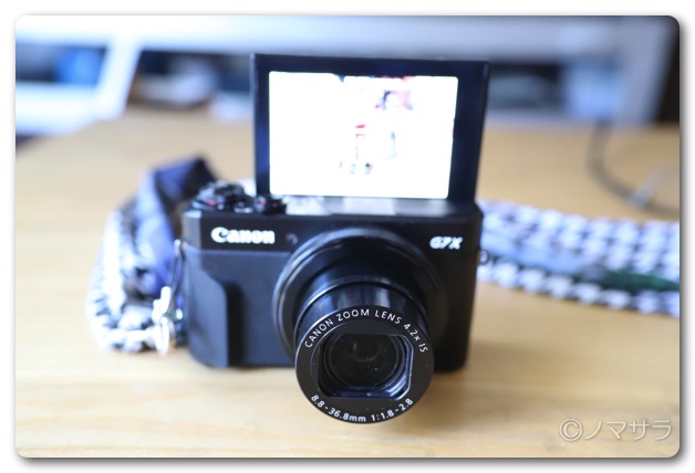 バリアングルモニター装備なので、自撮りや高い位置からモニターを見ながら撮影することができて便利。
