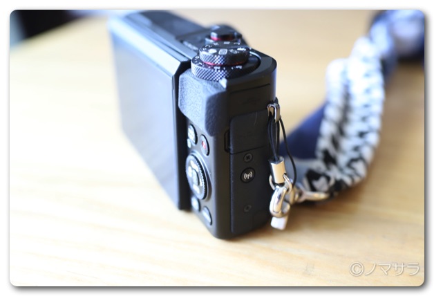 ストラップは大人気のサクラスリングを使っています。幅が広いので重さを感じません。またデザインがオシャレなのでとても気に入っています。