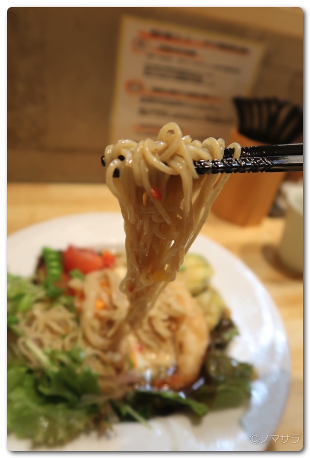 この 「ソフトシュリンプと彩り夏野菜の冷やし麺」も期待を裏切らない美味しさで大満足。夏場の食欲のないときでもスルスルと食べられそう。この日は比較的気温が低く肌寒い天気でしたので、周りに注文している方はおられませんでしたが、気温が高くなったら限定10食はあっという間になくなるような気がします。