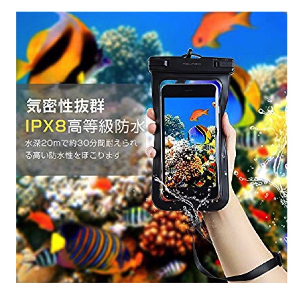 【IPX8防水&多保護】防水国際保護等級IPX8認定を獲得、水深約20mの環境でも、スマートフォン(またはその他同サイズの機器)を完全に保護することができます。また、水・雪・砂・汚れもの・擦り傷を完璧にシャットアウトすることができます。ご注意:ご使用の前に必ず携帯の代わりに一枚の紙をケースに入れて、防水ケースは水没して30分間の防水試験を行ってください。
