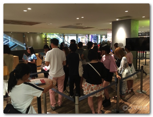 開店してから3分後に売場に到着したらすでに20人ほどの方が並んでいました。開店前にすでに並んでいたのだと思われます。予想より多くの方が並んでいましたが、特に急ぐ予定もなく娘たちが「どうしても飲みたい!」と言うので並ぶことにしました。
