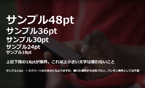 明朝は細かい文字のときに使う書体なので、プレゼン資料には不向き。