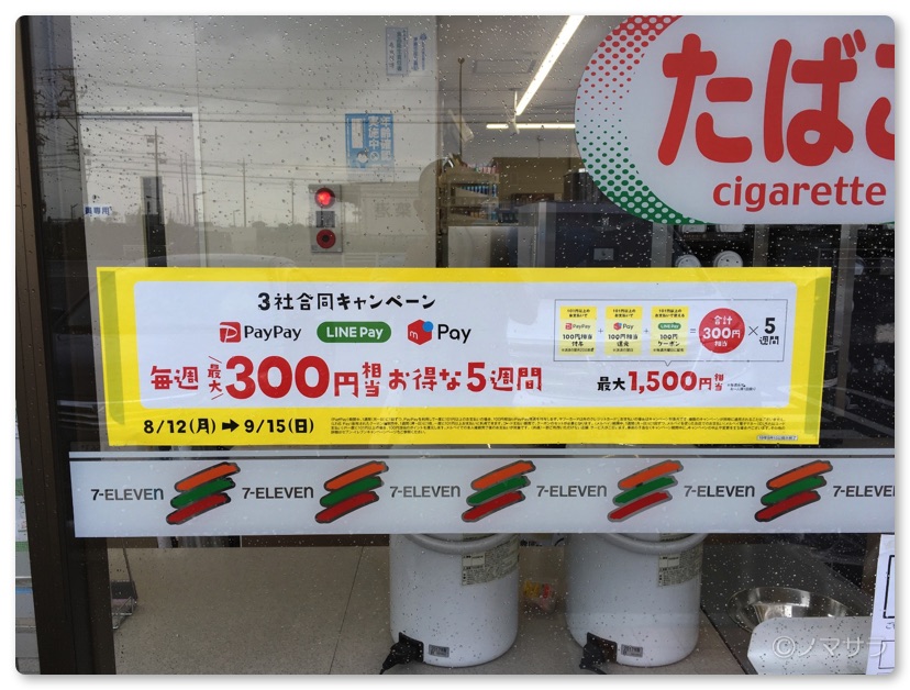 8月12日(月)からセブンイレブンでメルペイ、LINE Pay、PayPayの3社合同キャンペーンが始まりました。毎週、各サービスで100円分のポイント還元、もしくはクーポンが提供され毎週300円、5週間で最大1,500円お得になります。期間は9月15日(日)まで。セブンイレブンファンを利用する方は必ずスマホ決済サービスを使いましょう!