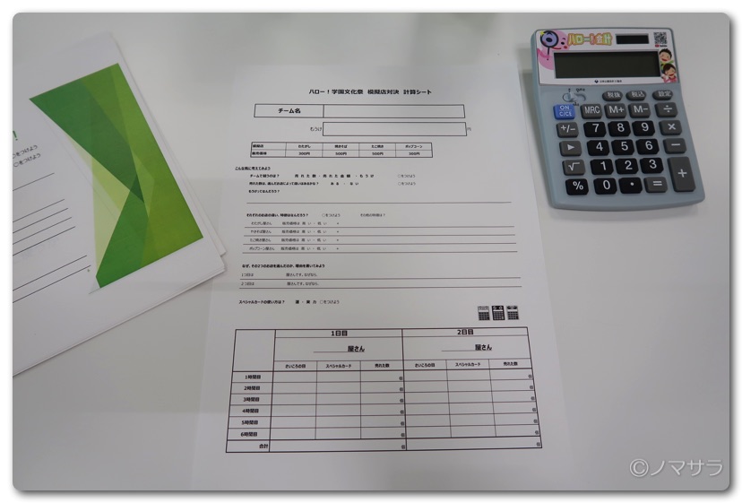 「もうけ」は売上ー費用で算出されます。費用は変動費と固定費に別れ、販売価格から変動費用を引いたものが限界利益ということを学びました。対決に使われた模擬店は「わたがし」、「焼きそば」、「たこ焼き」、「ポップコーン」の4つ。「たこ焼き」は高級たこを使っていて、「ポップコーン」は有機栽培アーモンドのキャラメルポップコーンという設定。諸経費についてはこの時点ではオープンにされていませんが想像力を働かせて変動費が低い(原価が安い)「わたがし」と「焼きそば」を選ばないと上位へ入れません。
