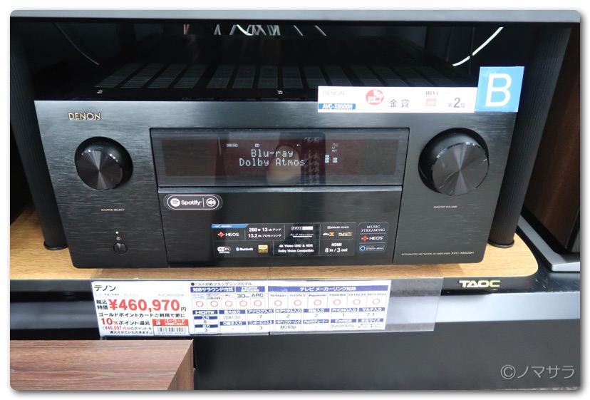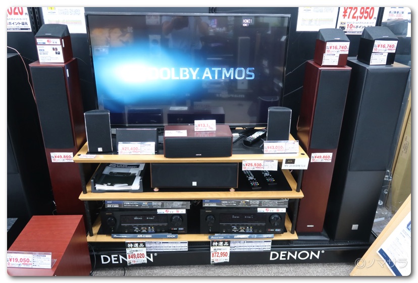 最近は、高性能でも価格が驚くほど安くなっています。今はYAMAHAのアンプを使っていますが、色々調べたらDENONのAVアンプが性能が良く価格がリーズナブルで人気があることがわかり、いつものヨドバシカメラで早速、物色してきました。この世界はピンからキリまであり、同じメーカーのAVアンプでも高いものは50万円近くしますし、安いものだと4万円ぐらいからあります。