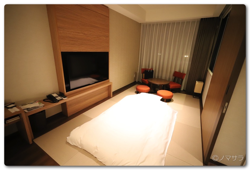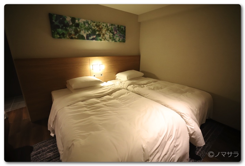 ベッドはツインですが、くっつければ3人で充分寝られます。無料で一人分の布団のサービスがあるため、全く追加料金がかかることなく宿泊できました。