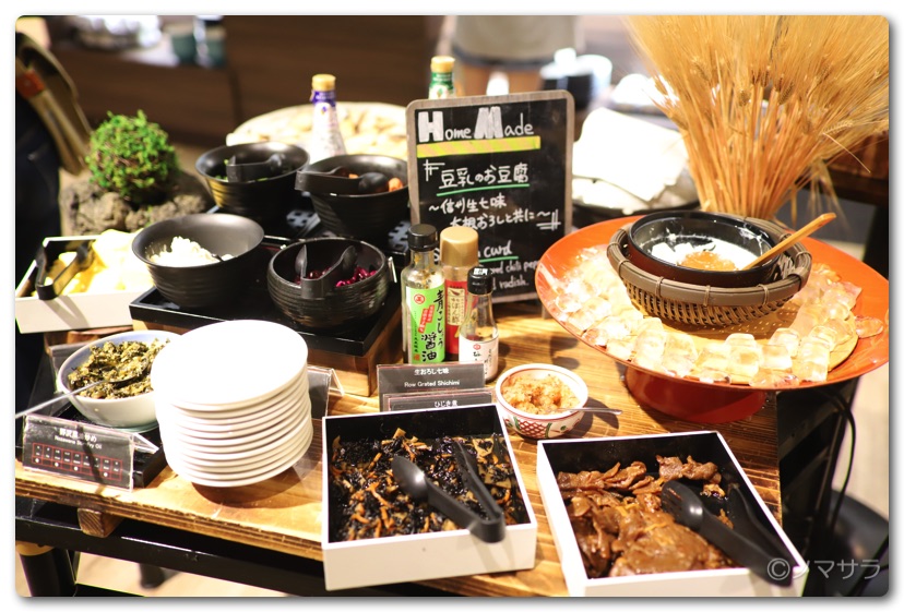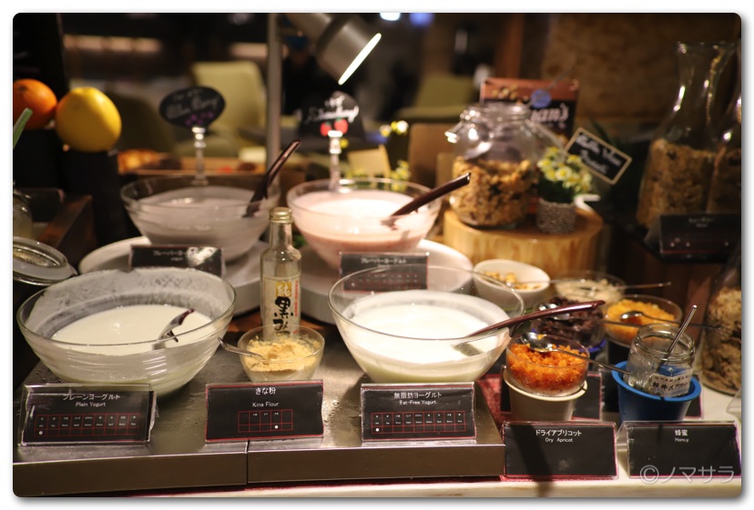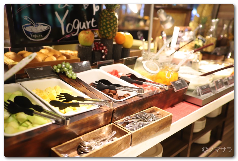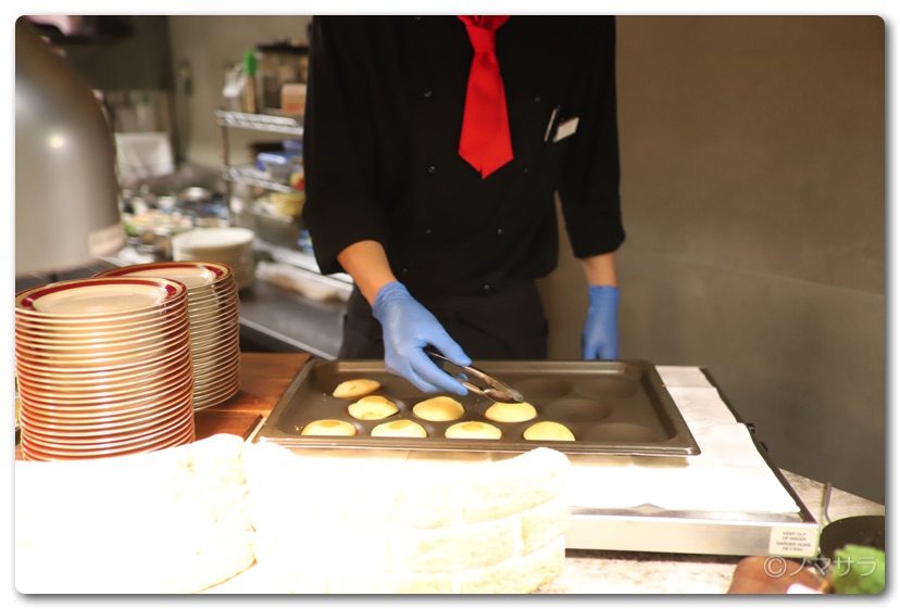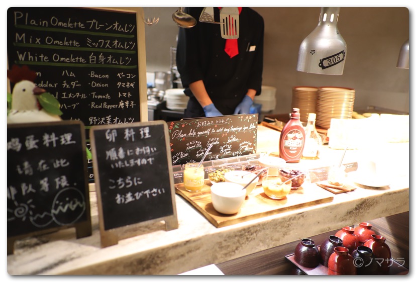 2日目の朝食はメインウィングのレストランでブュッフェスタイルの朝食をいただきました。Bonvoyのキャンペーンで子供は半額でしたが、それでも家族4人だと約7,000円となかなかのお値段。普段から少食なので絶対に元は取れませんが味と雰囲気は素晴らしいので、利用する価値はあります。今回は無料宿泊だったのと朝8時半過ぎには出なければならなかったので思い切って利用してみましたがとても満足できました。オムレツはその場でトッピングを選んで作ってくれます。またパンは昨日食べた「ブランジェ浅野屋」が並んでいました。