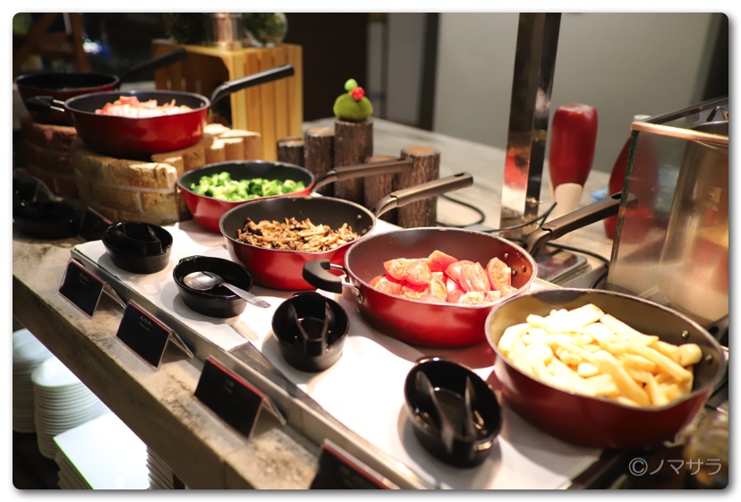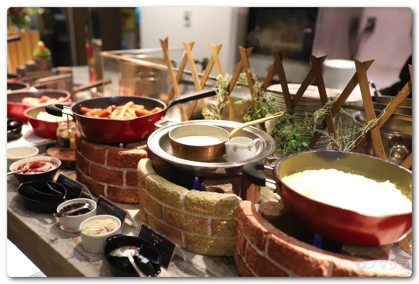 2日目の朝食はメインウィングのレストランでブュッフェスタイルの朝食をいただきました。Bonvoyのキャンペーンで子供は半額でしたが、それでも家族4人だと約7,000円となかなかのお値段。普段から少食なので絶対に元は取れませんが味と雰囲気は素晴らしいので、利用する価値はあります。今回は無料宿泊だったのと朝8時半過ぎには出なければならなかったので思い切って利用してみましたがとても満足できました。オムレツはその場でトッピングを選んで作ってくれます。またパンは昨日食べた「ブランジェ浅野屋」が並んでいました。