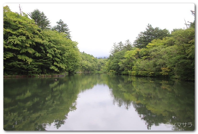 1時間ほど見学した後、山道を走って東山魁夷の絵で有名になった「御斜鹿池」へ。