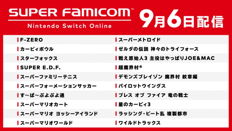 1990年に発売されたゲーム機「スーパーファミコン」のソフトがぎっしり詰まったゲーム集『スーパーファミコン Nintendo Switch Online』がNintendo Switch Onlineの新サービスとして9月6日(金)から開始されました。