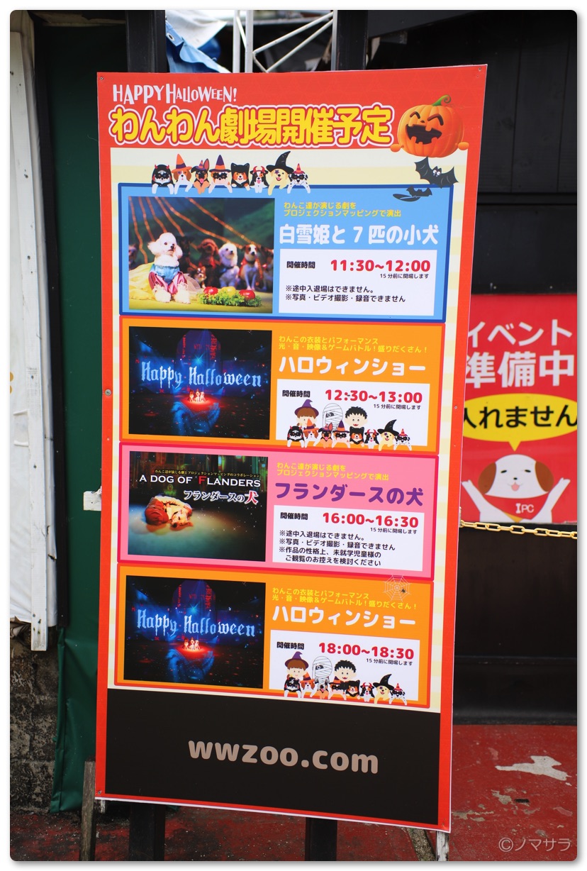 11時30分からはわんこ達によるショーを鑑賞。テーマは白雪姫と七人のこびと。よく訓練されており、プロジェクションマッピングと相まって思っていたより見応えのあるステージとなっていました。ただし入口で渡された折り紙に投げ銭を包んでくださいと言われたのには少々興ざめでしたが…。わんこにバケツを咥えさせて客席をまわった方がよっぽど集まると思います。やり方が残念。