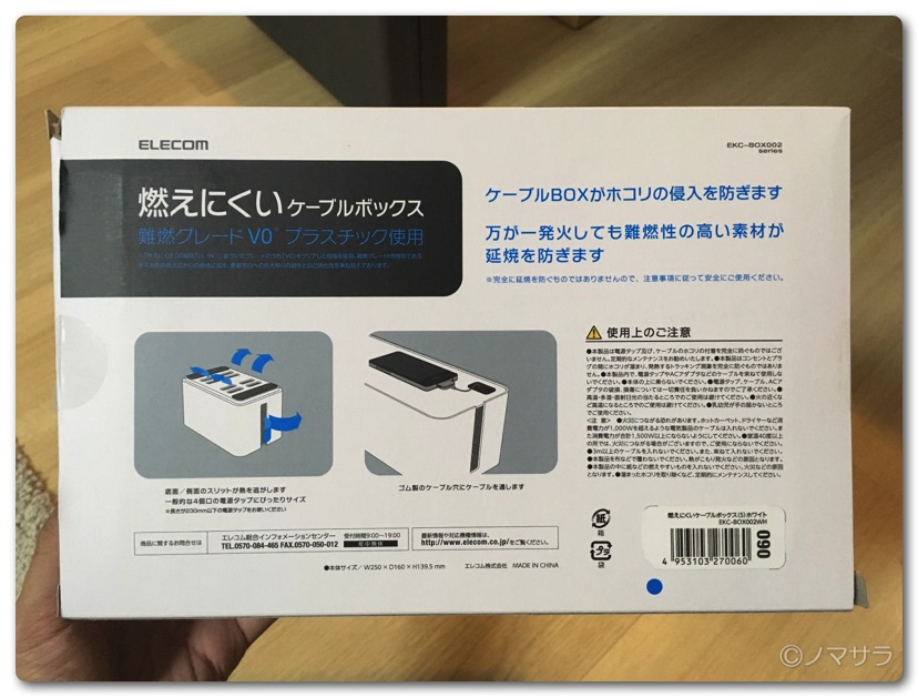 ELECOM ケーブル収納ボックスは底面に放熱穴がついているため多少熱を持つマルチタップでも問題ありません。また万が一発火したとしても不燃材のためボックス自体が燃えることはなく安心して使うことができます。