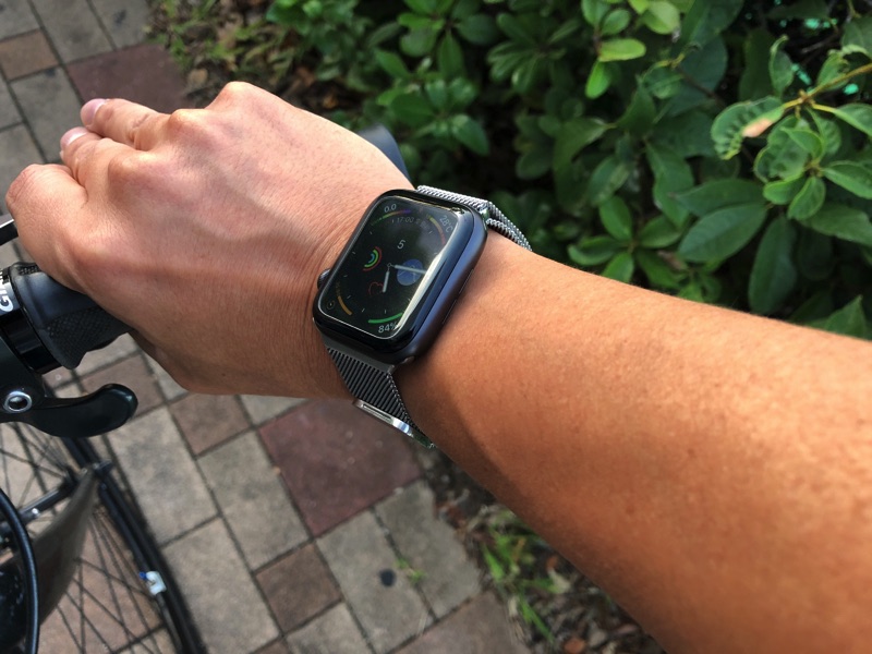 実際にAppleWatchシリーズ5を使ってみた感想としてはいちいち腕を上げたり手首を返さずに時刻が見えるのは本当に便利。クロスバイクのハンドルを握ったままでも時刻を確認することができるのはありがたい。