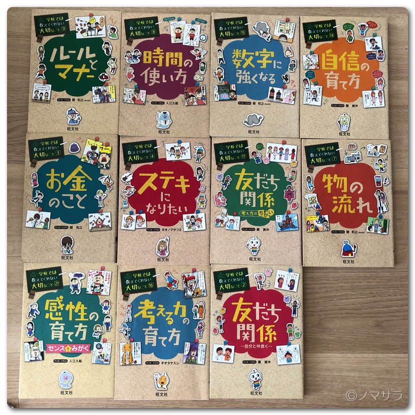 小学6年と3年の娘は普段から読書する習慣がついているので、11冊一気に渡したところ没頭して読んでいました。11冊の中で子どもたちが面白かったと言ったのは「時間の使い方」「ルールとマナー」「お金のこと」の3冊。