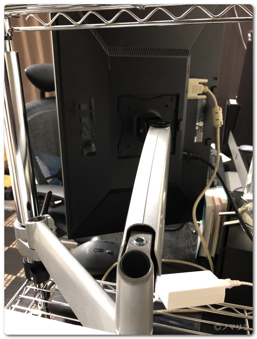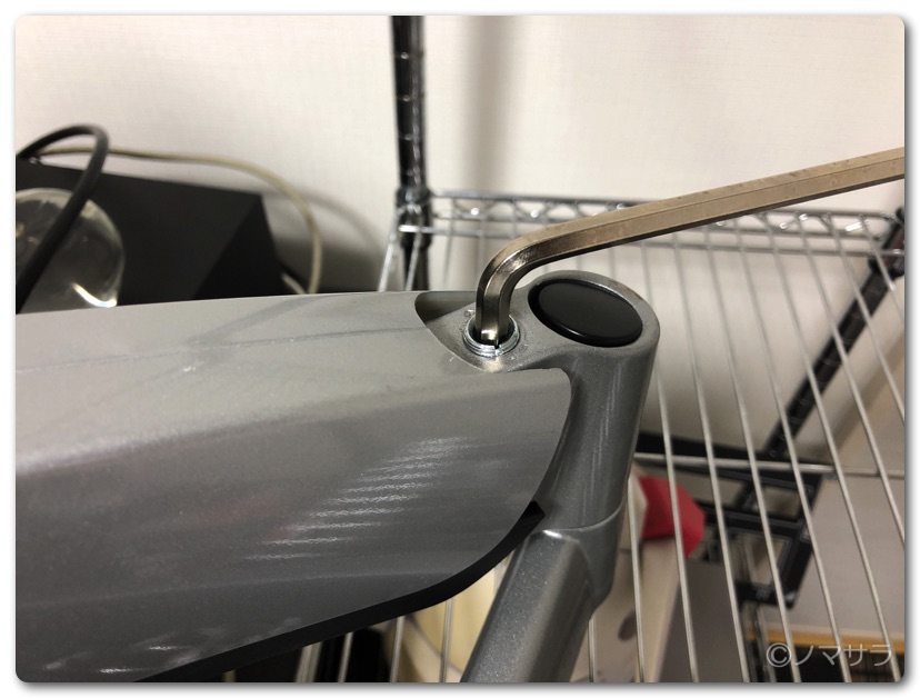 上下の高さの調整はネジを回してモニターの重力とガス圧が吊り合うように調整します。